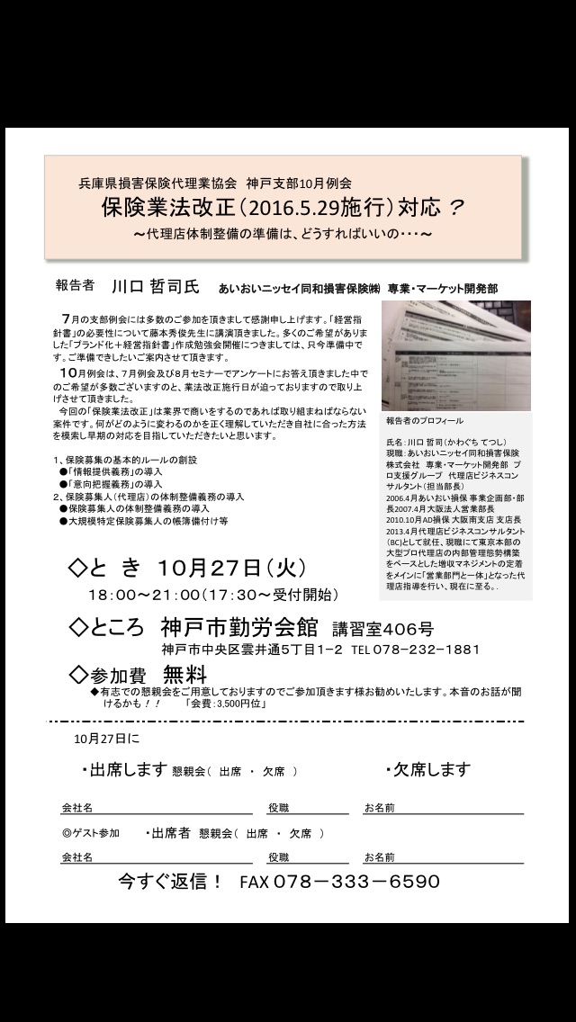 10月度神戸支部例会を開催します