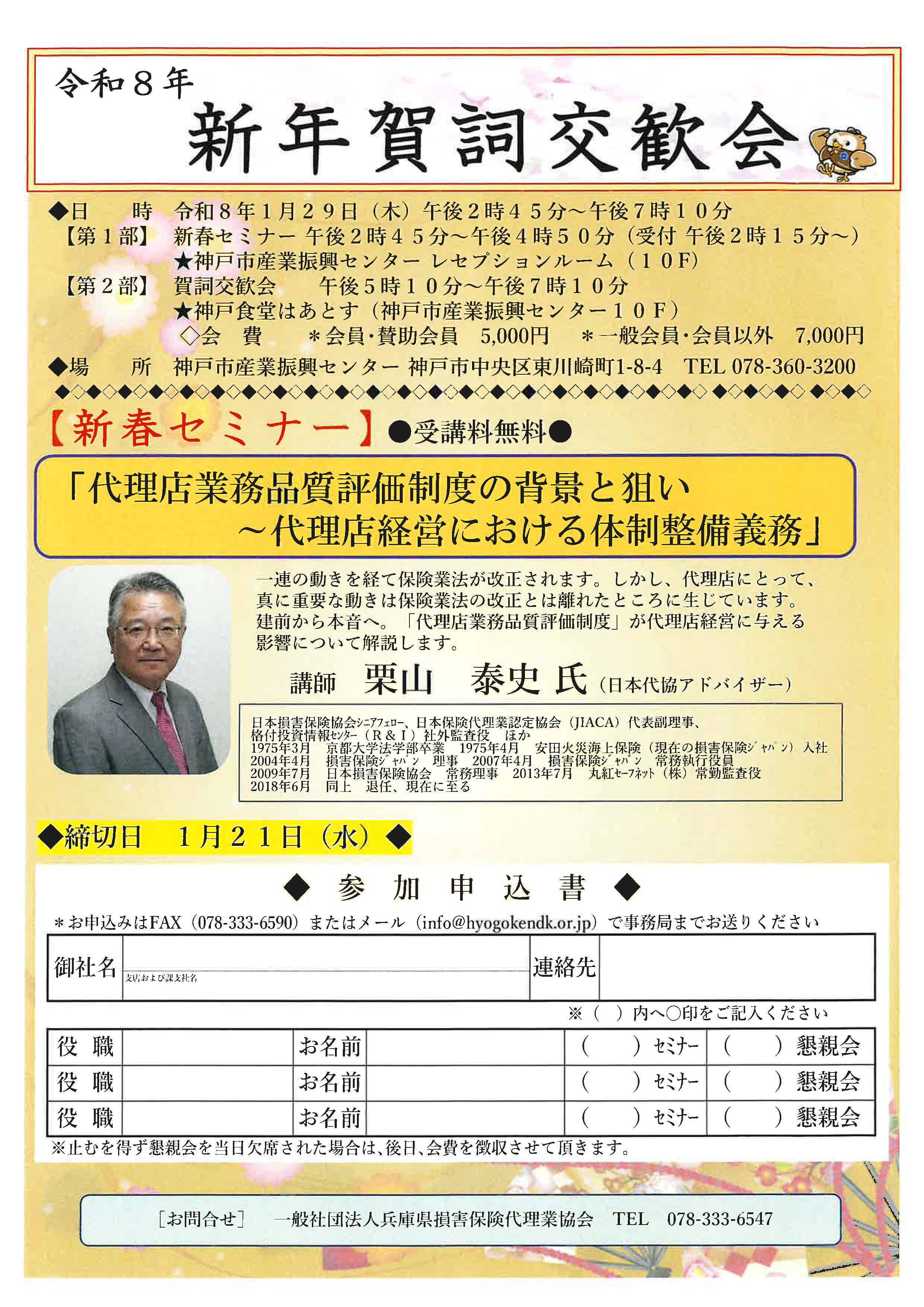 賀詞交歓会に先立ちまして、日本代協アドバイザー 栗山 泰史氏を講師にお迎えし、